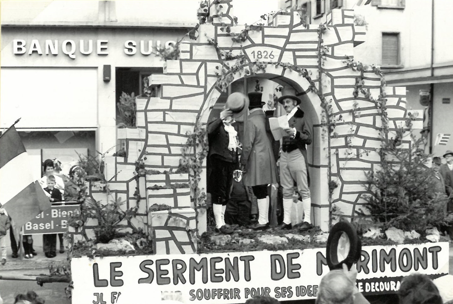 Char Serment de Morimont, probablement lors du cortège de la Fête du peuple jurassien de 1965.