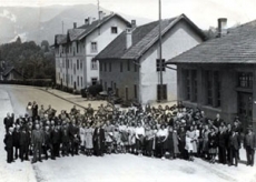 Bâtiments de la Verrerie, démolis pour faire place au nouveau bâtiment, 1943. Mémoires d'Ici. Collection privée, Musée du tour automatique et d'histoire de Moutier.